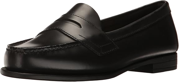 Womens Loafers Slip On Penny: Black Comfortable Leather Mid Wedge Heel Casual Flats Arch Support Round Toe Boat Shoes