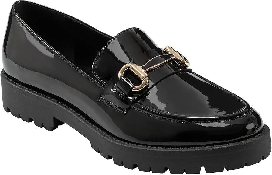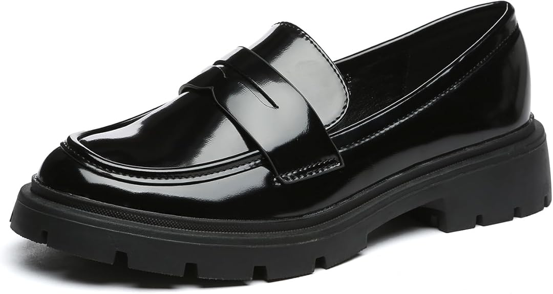 Women's Chunky Platform Loafers with Chain or Buckle Patent Leather Black Penny Loafers Fashion Office Shoes School Dress Shoes