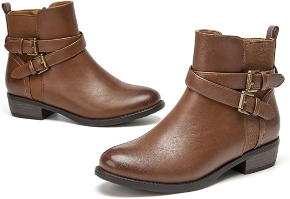 Women's Ankle Boots,Round Toe Low Heel Comfort Elastic Booties with Side Zipper Buckle Strap