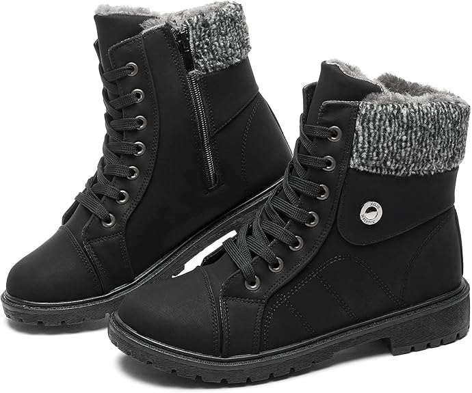 Women Winter Boots Snow: Warm Cotton Fur Lined Winter Shoes Lace Up Comfortable Non Slip Ankle Platform Boots Outdoor