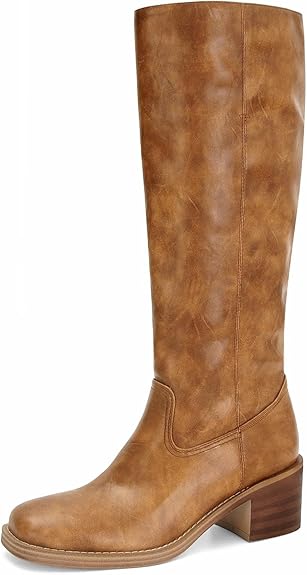 Women's Knee High Boots Square Toe Chunky Block Heel Tall Boots Wide Calf Fashion Comfortable Casual Pull on Long Boots