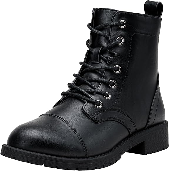 Women's Ankle Boots Low Heel, Lace up Fashion Combat Booties