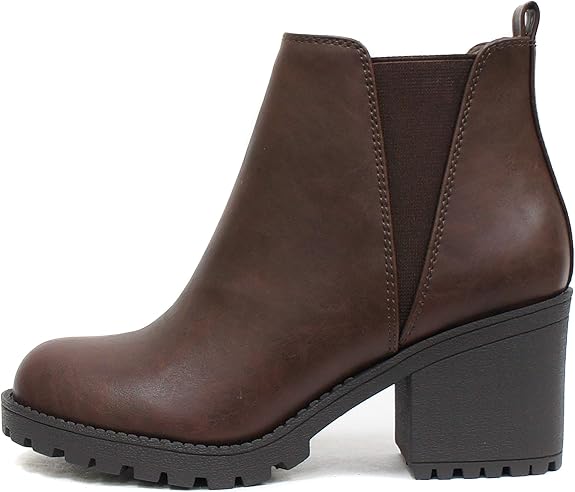 WOMEN LUG SOLE MID HEEL FASHION ANKLE BOOTIE W/DOUBLE ELASTIC GORE