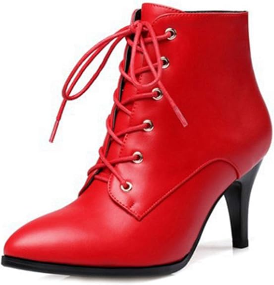 Women's Fashion Stiletto Kitten Heel Ankle Boots Pointy Toe Lace Up Zipper Booties Dress Short Boot
