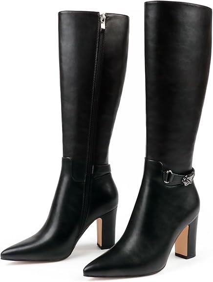 Women's Knee High Boots Side Zipper Lug Sole 2 Inch Stacked Chunky Heel Boots