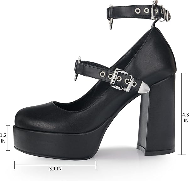 Women's Sexy Thick Heels Platform Heart Buckle Strap Mary Janes High Heel Round Toe Goth Shoes